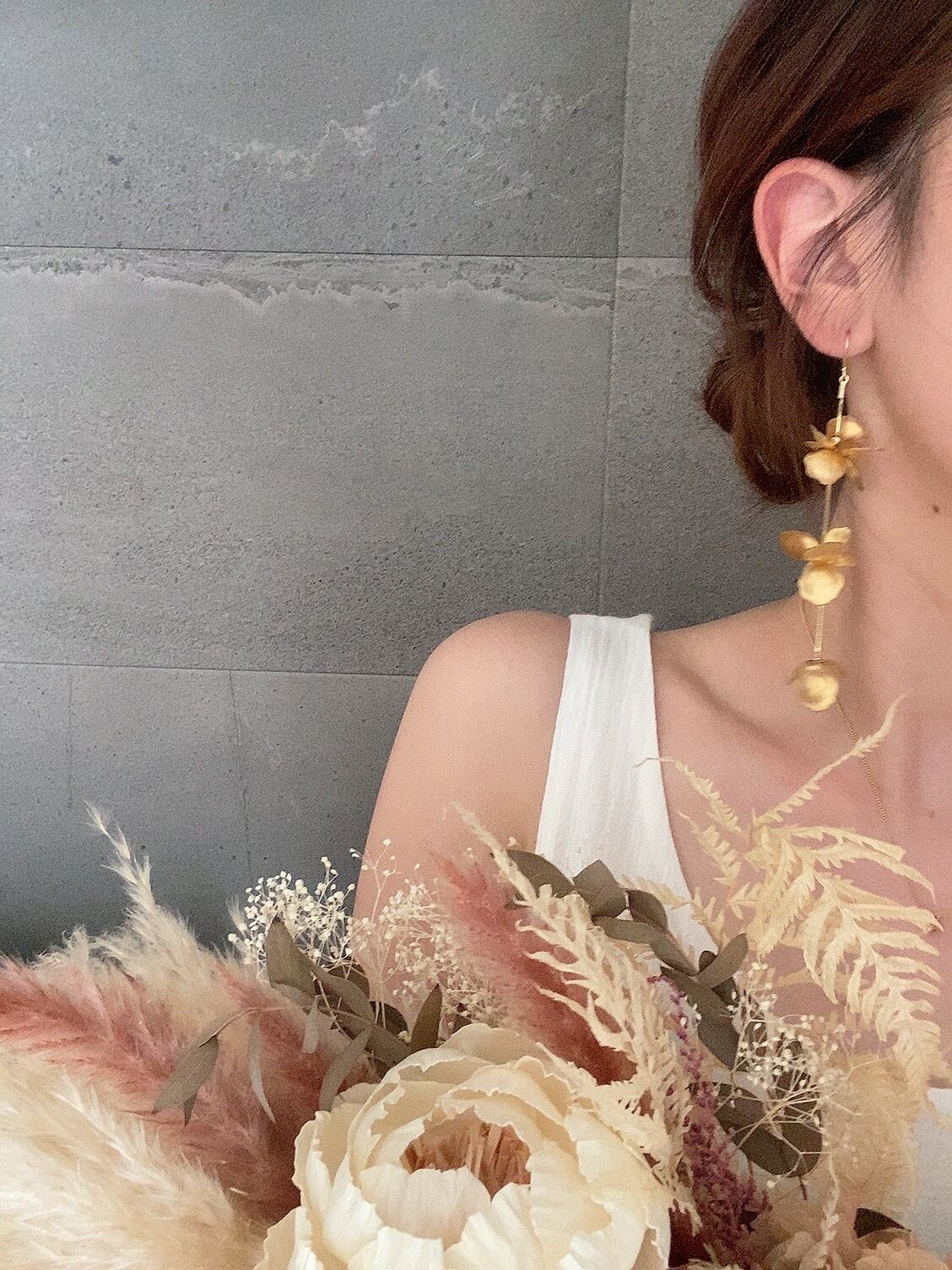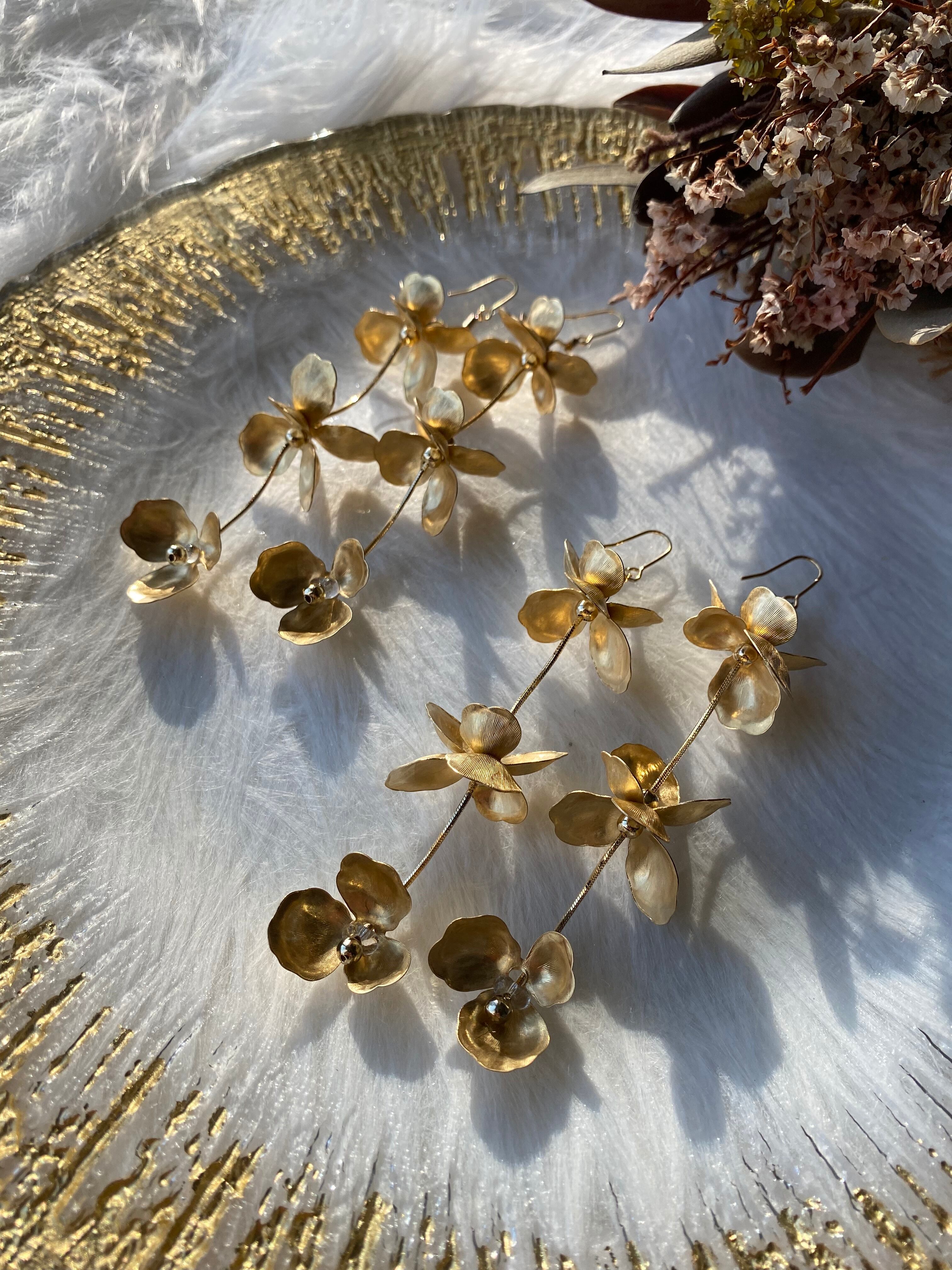 海外のヴィンテージ真鍮の花びらを 贅沢に使用したデザイン。 華やかなデザインなので、 カラーはシンプルにゴールド1色で。 滑らかな優しい艶感のある スネークチェーンはキリッと 全体の印象をまとめて、上品な印象に。 花びらを贅沢に使用していますが、 甘くなりすぎず、絶妙なバランスに 仕上がっております。 普段のシンプルなコーデに 合わせていただくだけで、 コーデも気分も華やかに♡ ウエディングの花嫁アクセサリー にもピッタリです。